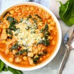 - Garnish and serve: Divide chickpea kale soup into bowls and garnish with some dairy-free parmesan before serving.