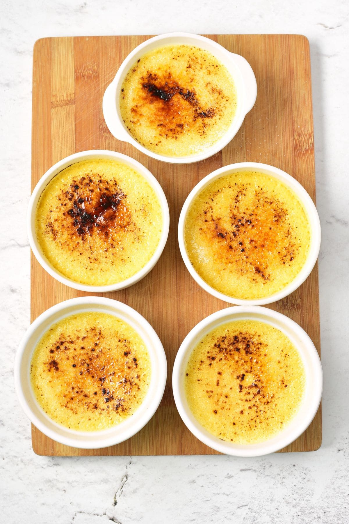 - Make Smaller Portions: I used medium ramekins (8 ounces each) which resulted in 5 servings. However, if you use small 5-ounce ramekins, you will be able to get 8 servings of this gluten-free creme brulee.