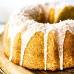 - Pour Glaze Over Cake: Pour the glaze over the bundt cake and top with the shredded coconut. Let glaze set.
