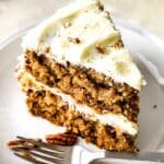 Storing/Freezing: To store, place the gluten-free dairy-free carrot cake in an airtight container or wrap in plastic wrap and store in the refrigerator for up to 5 days. To freeze, make sure that the frosting is well set before wrapping the cake in plastic wrap and then placing in a freezer-safe container and freeze for up to 2 months. Let the frozen gf carrot cake thaw completely overnight before cutting and serving.