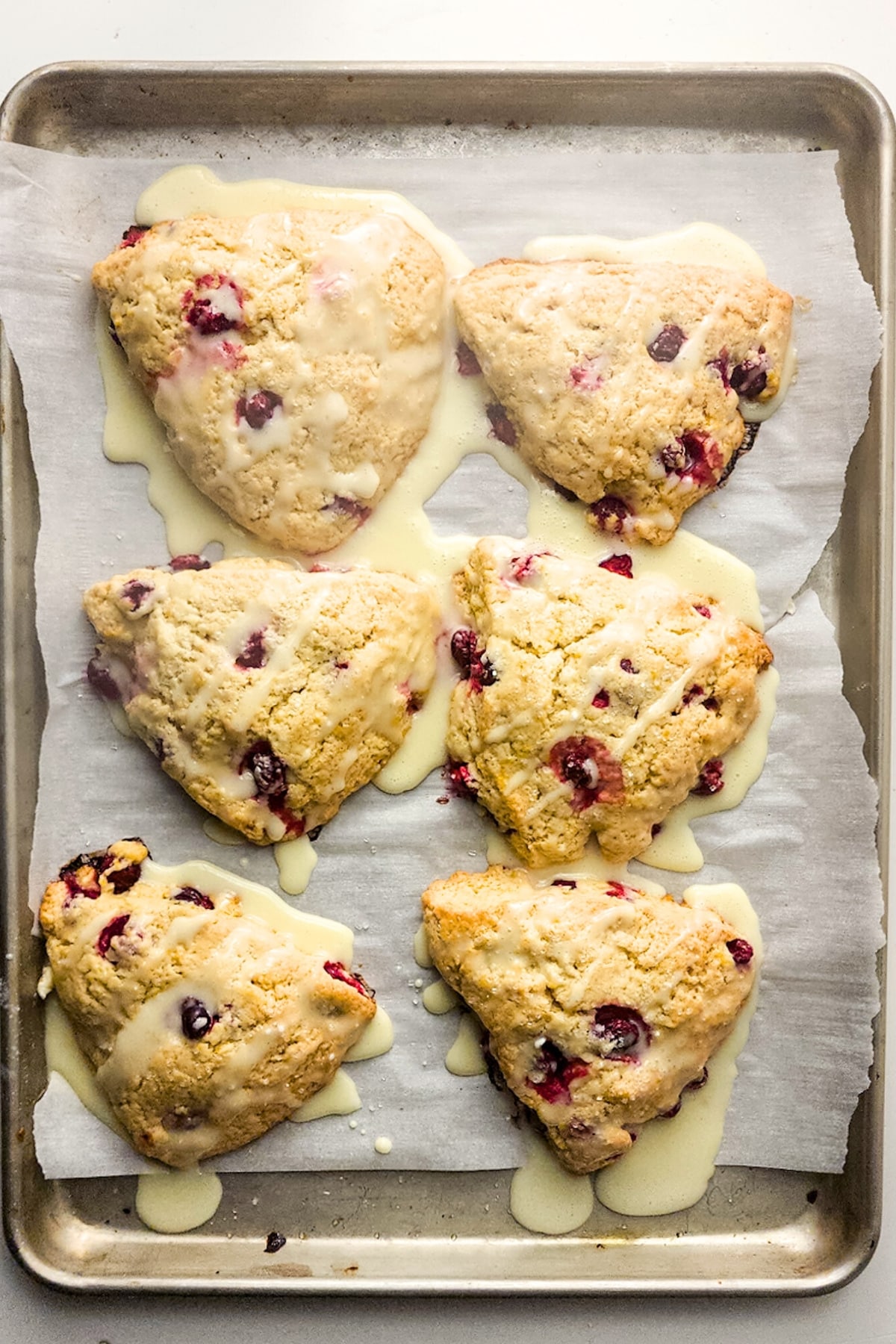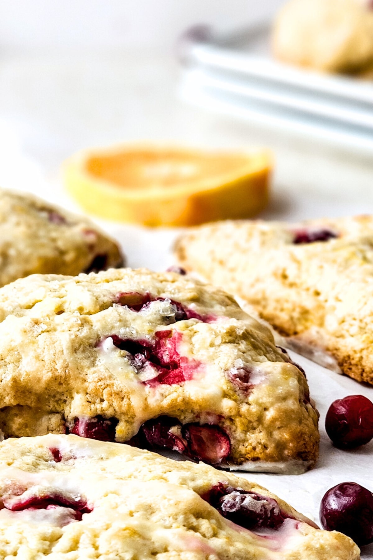 Serve the glazed cranberry orange scones while warm or store for later.