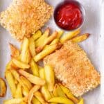 Storing: To store, place any leftover fish and chips in an airtight container and store in the refrigerator for up to 4 days. Reheat in the air fryer or oven at 350F for a few minutes to heat up the fish and chips again until they are crispy before serving.