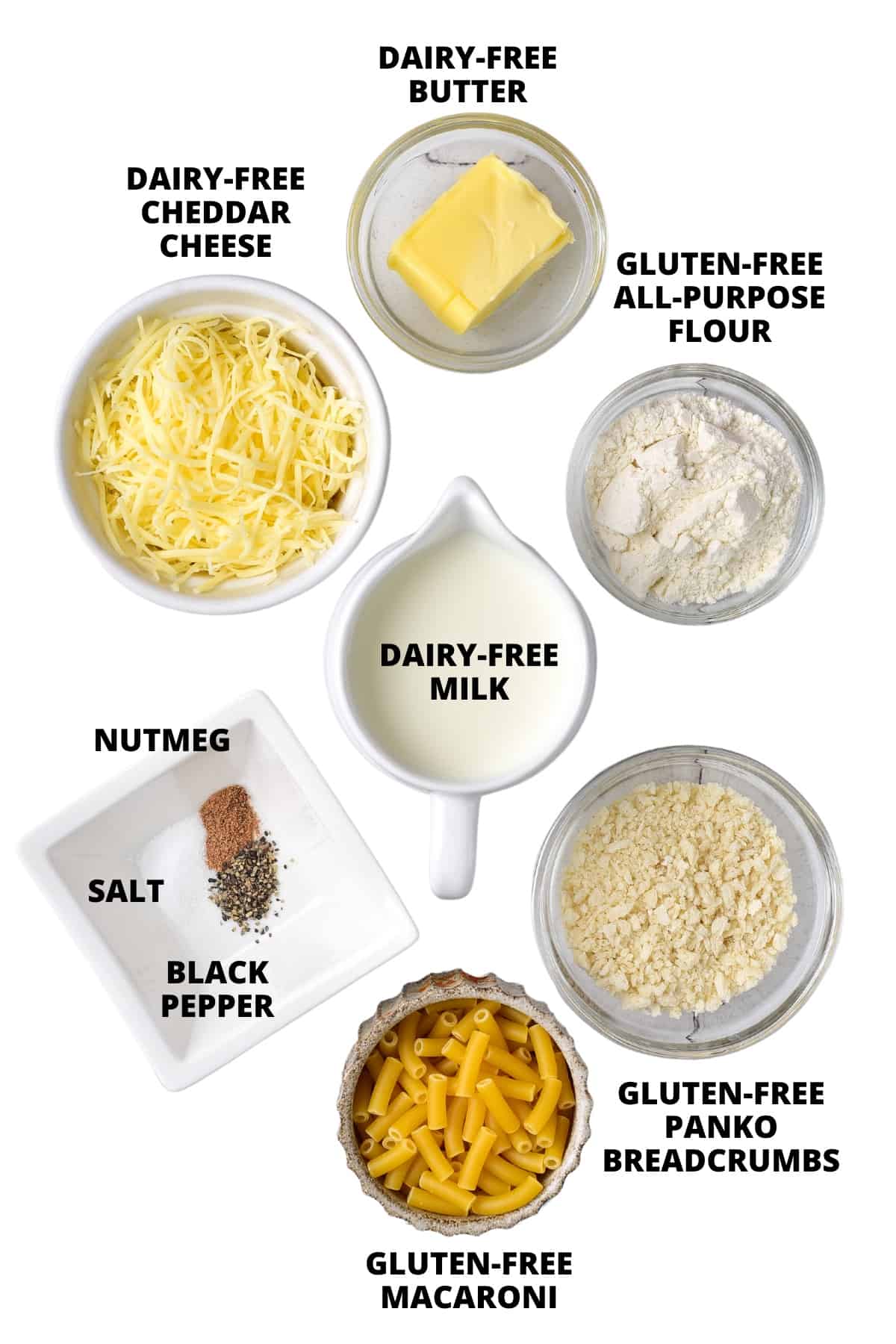Here’s a visual overview of the ingredients required for this gluten-free macaroni and cheese recipe.