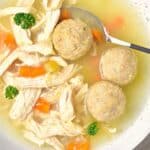 Cozy and comforting, a bowl of this gluten-free matzo ball soup is a warm and satisfying meal that is perfect anytime of the year, and especially during Passover. Homemade gluten-free matzo balls are paired with shredded chicken and veggies in a clear broth that’s simple yet flavorful. Totally dairy-free too.